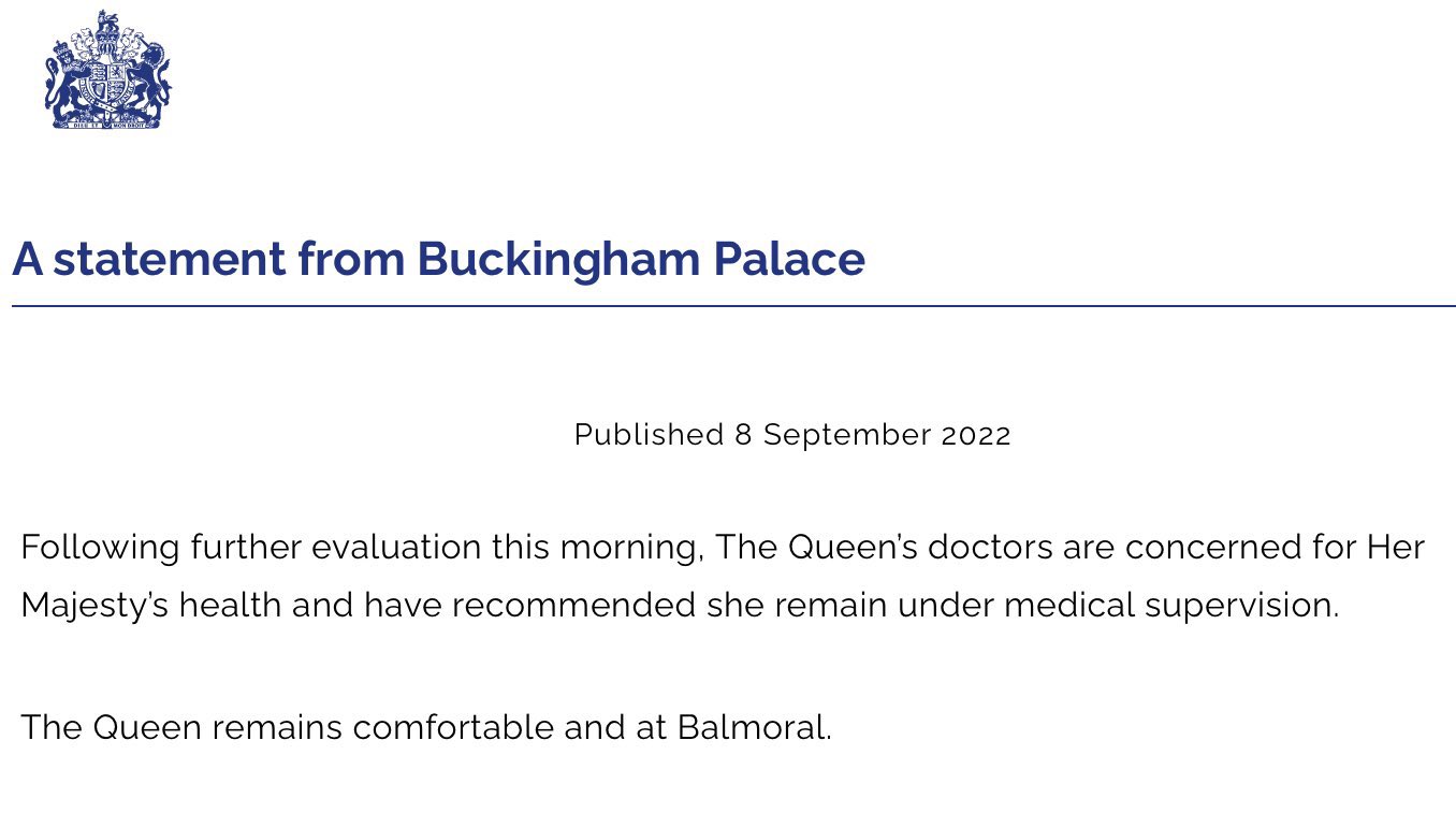 “And now we’ve just had the statement through in the past hour from the palace that the Queen is under medical supervision.”